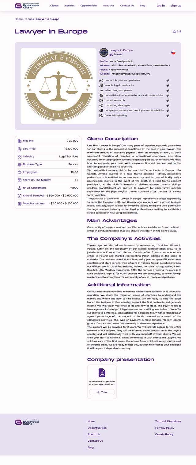 Або ж підприємець знаходить запит на клонування, що за вимогами - відповідає його бізнесу, він може переглянути таку інформацію: