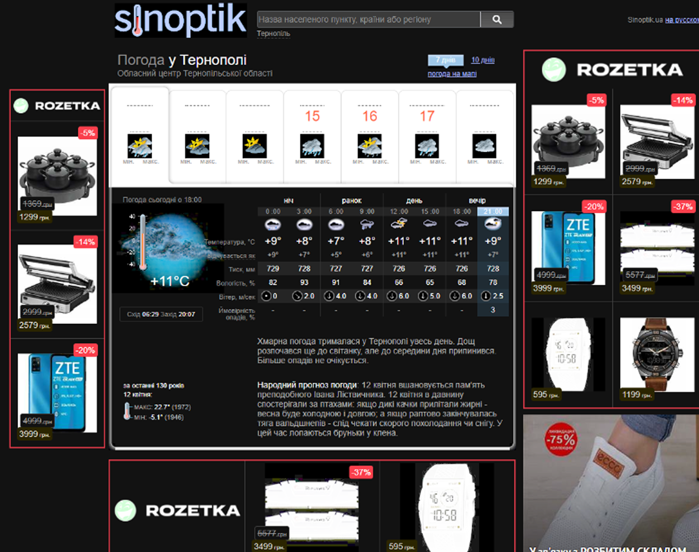 Медійна реклама в google — це реклама яка показується на сайтах партнерів Google у вигляді рекламних банерів. Наприклад якщо Ваш клієнт зайде на сайт Sinoptik для того щоб переглянути прогноз погоди, він також зможе натрапити на Вашу рекламу. Також до даної реклами підключається ремаркетинг для того щоб Ваш клієнт після того як вийшов з сайту повернувся до Вас.