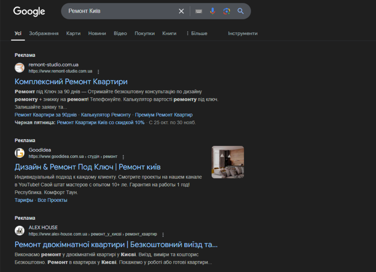 Приклад пошукової реклами